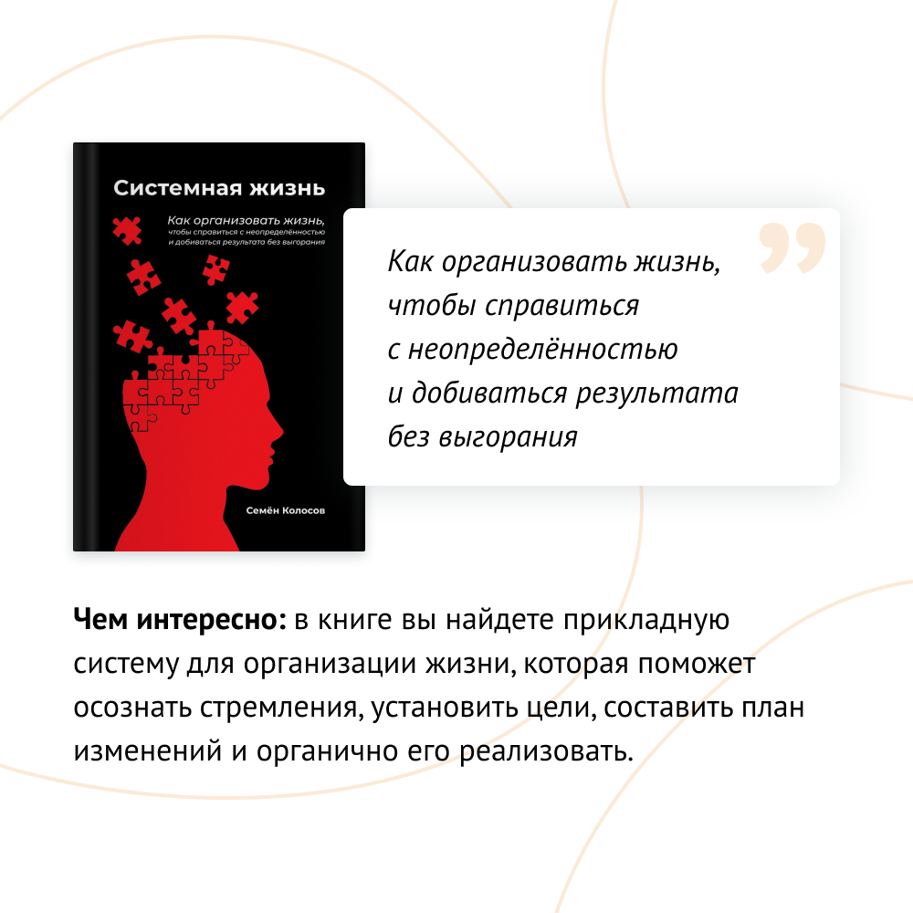 Больше о том, как обрести контроль над жизнью и принимать решения, несмотря на внешние обстоятельства, читайте в книге Семена Колосова «Системная жизнь»