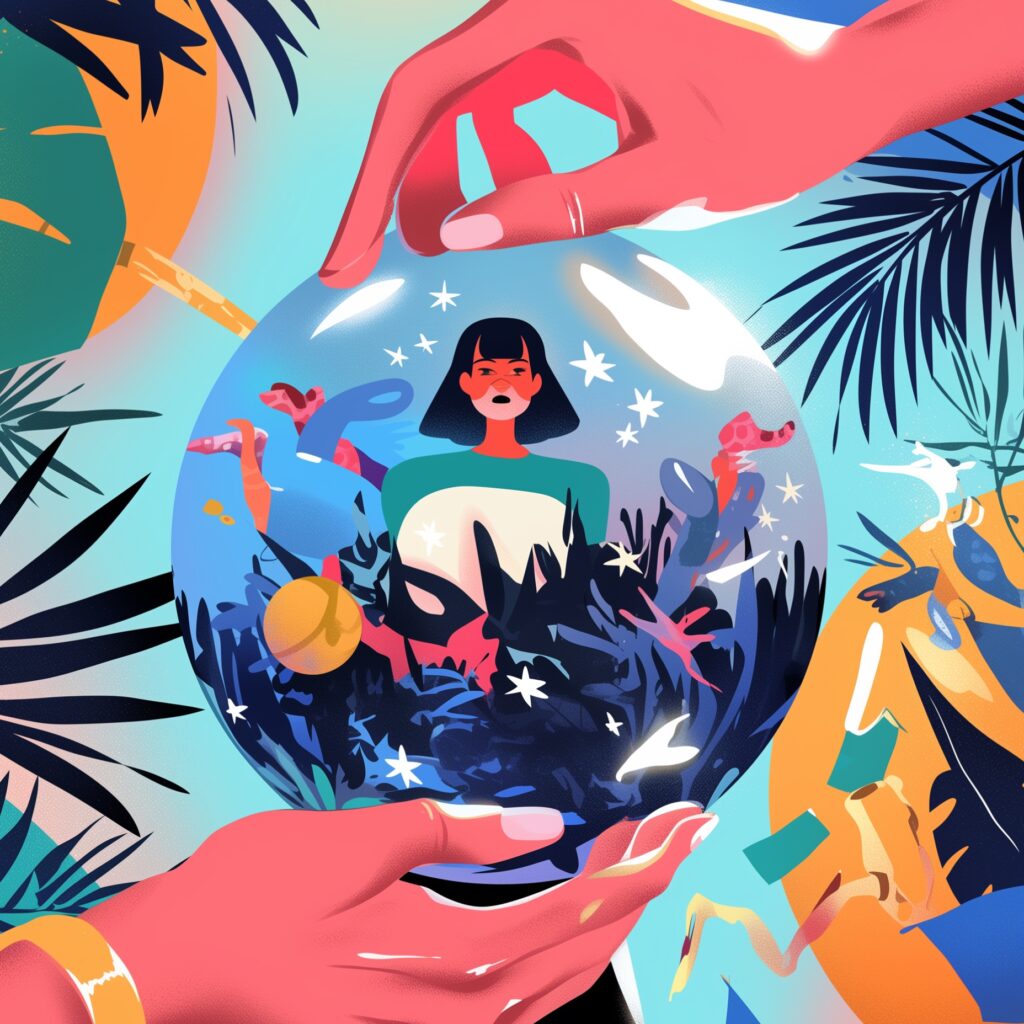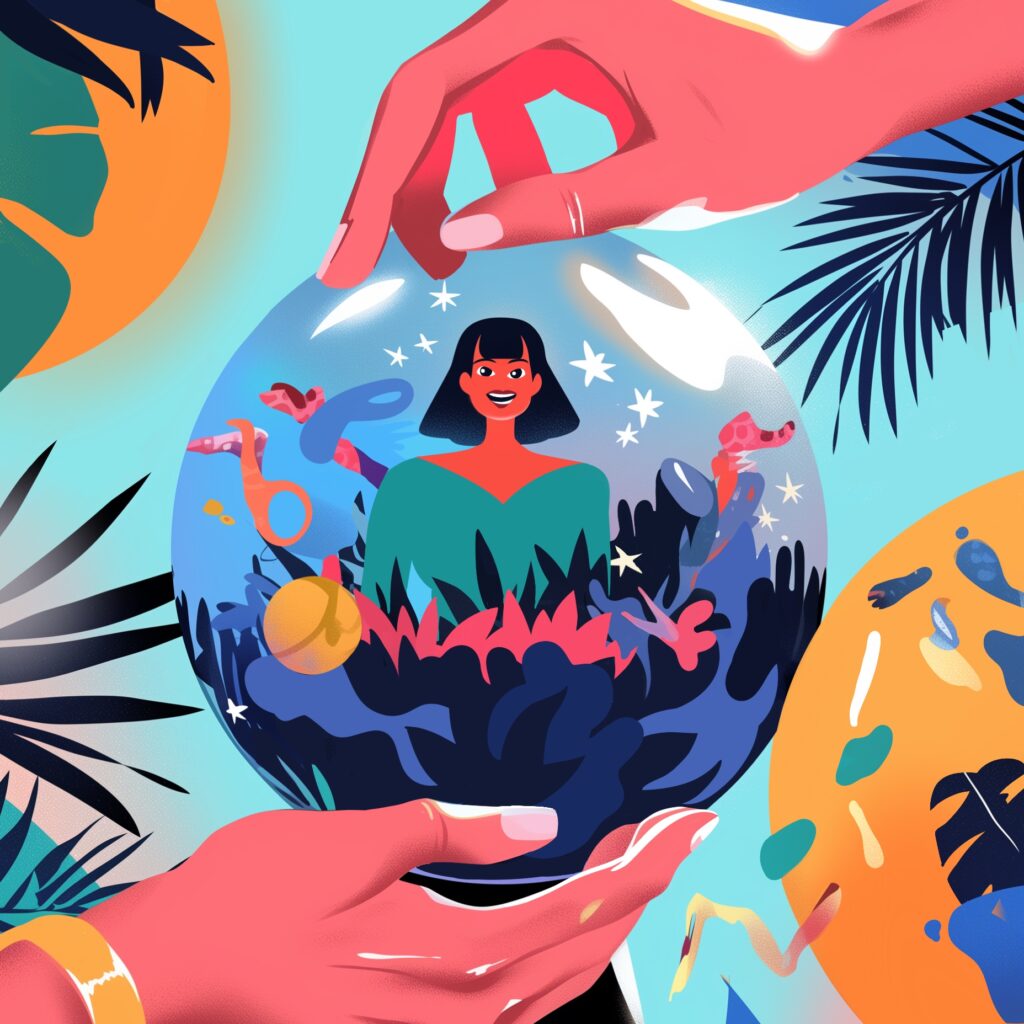 Например, на изображении ниже мы видим множество разбросанных деталей внутри шара и в правом нижнем углу, которые не складываются в единый гармоничный узор. Ниже — изображение, которое отредактировано иллюстратором.