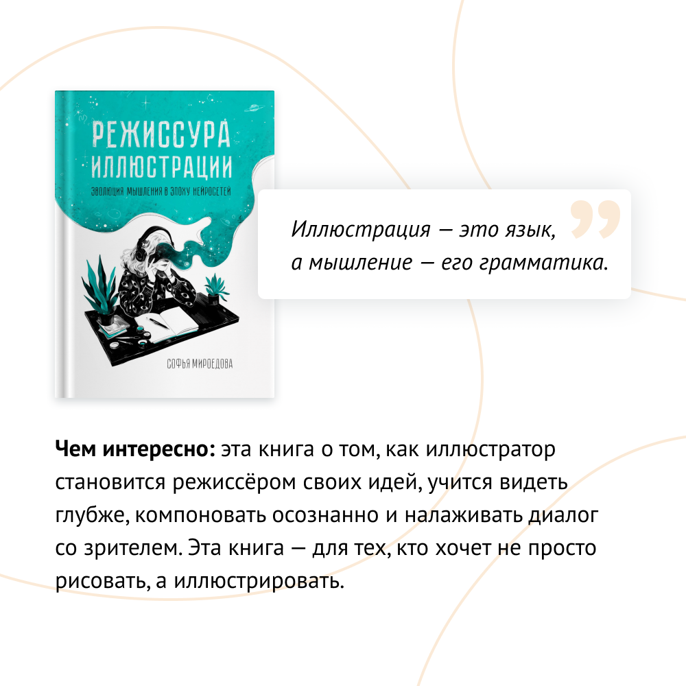 Подробнее о том, как работать с нейросетями в иллюстрациях и обложках, читайте в книге Софьи Мироедовой «Режиссура иллюстрации: эволюция мышления в эпоху нейросетей».